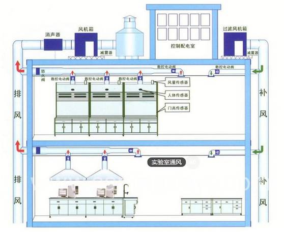 實驗室通風(fēng)系統(tǒng)一般由通風(fēng)設(shè)備、通風(fēng)管道、消聲器、風(fēng)機(jī)、控制系統(tǒng)組成。