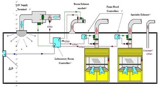 為了保證實驗室內(nèi)操作人員安全,我們需要對各種實驗室設(shè)備的氣流準(zhǔn)確控制,例如,常用的通風(fēng)柜、生物安全柜、萬向排風(fēng)罩以及實驗動物設(shè)備當(dāng)中的動物籠架等,其控制目的是保證明驗當(dāng)中產(chǎn)生的有毒有害氣體不會溢出而危及人員安全。關(guān)于實驗室周邊環(huán)境安全的保證,則通常是經(jīng)過保證實驗室的負(fù)壓來完成的。