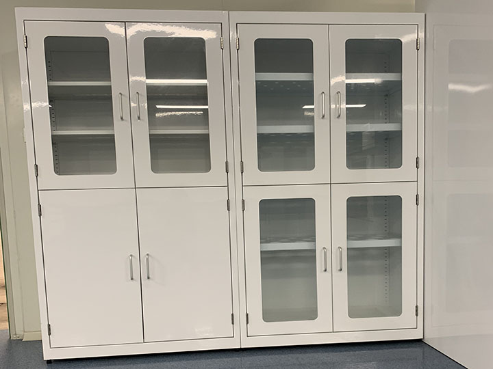 2. 柜門:采用8mm厚瓷白色原料板制作,視窗部分以5mm鋼化玻璃制作。